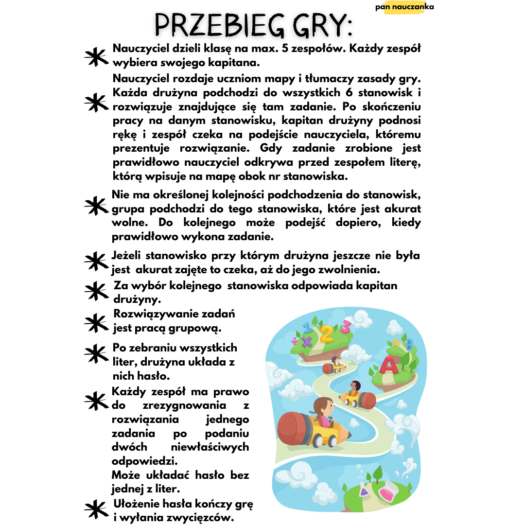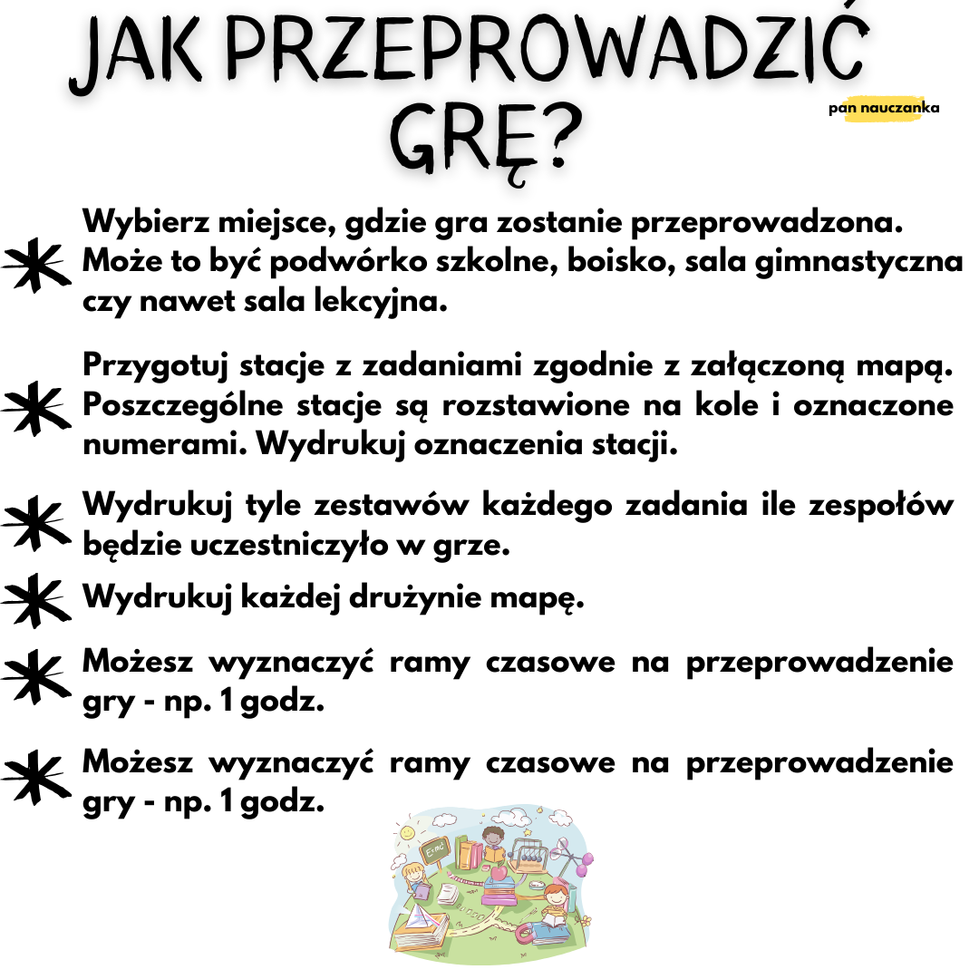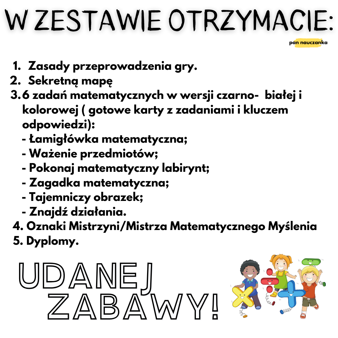 Przygotuj się na niezwykłą przygodę matematyczną, która przeniesie Twoich uczniów w świat liczb, zagadek i logicznego myślenia! Nasz zestaw "Matematyczne Wyzwania" to perfekcyjnie skomponowana gra terenowa, która zamieni naukę matematyki w fascynującą podróż pełną wyzwań i odkryć.