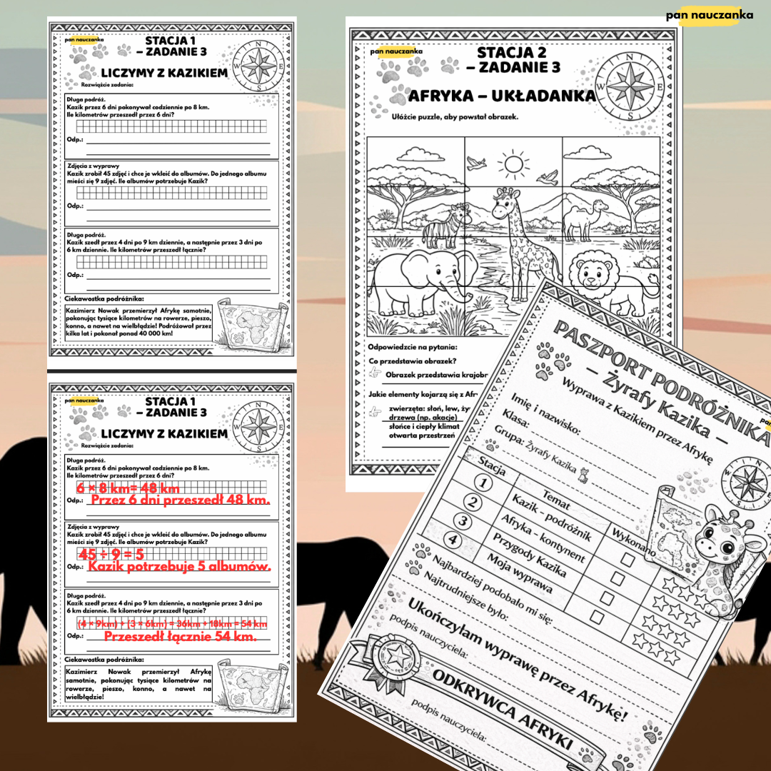 Wyprawa z Kazikiem przez Afrykę – stacje zadaniowe (klasy 1–3)